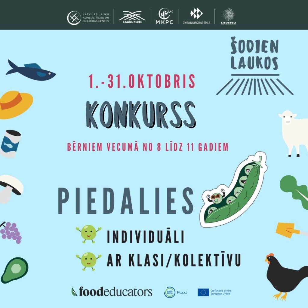 Vai zināji, ka oktobrī tiek svinēta Pasaules pārtikas diena? Konkursu organizējam kopā ar EIT Food programmu “Foodeducators”, kur sagatavoti izglītojoši mācību materiāli par Pasaules pārtikas svētkiem. Kā arī pedagogam, piedaloties aktivitātē kopā ar klasi, ir iespēja saņemt sertifikātu!